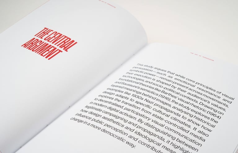 My dissertation explores the subject of political and social design and how visual communication is employed as a tool for persuasion, coercion and identity. The piece includes interrogations of the propaganda used in Nazi Germany, the graphics of the 2008 Obama campaign and the design of grassroots social movements.
